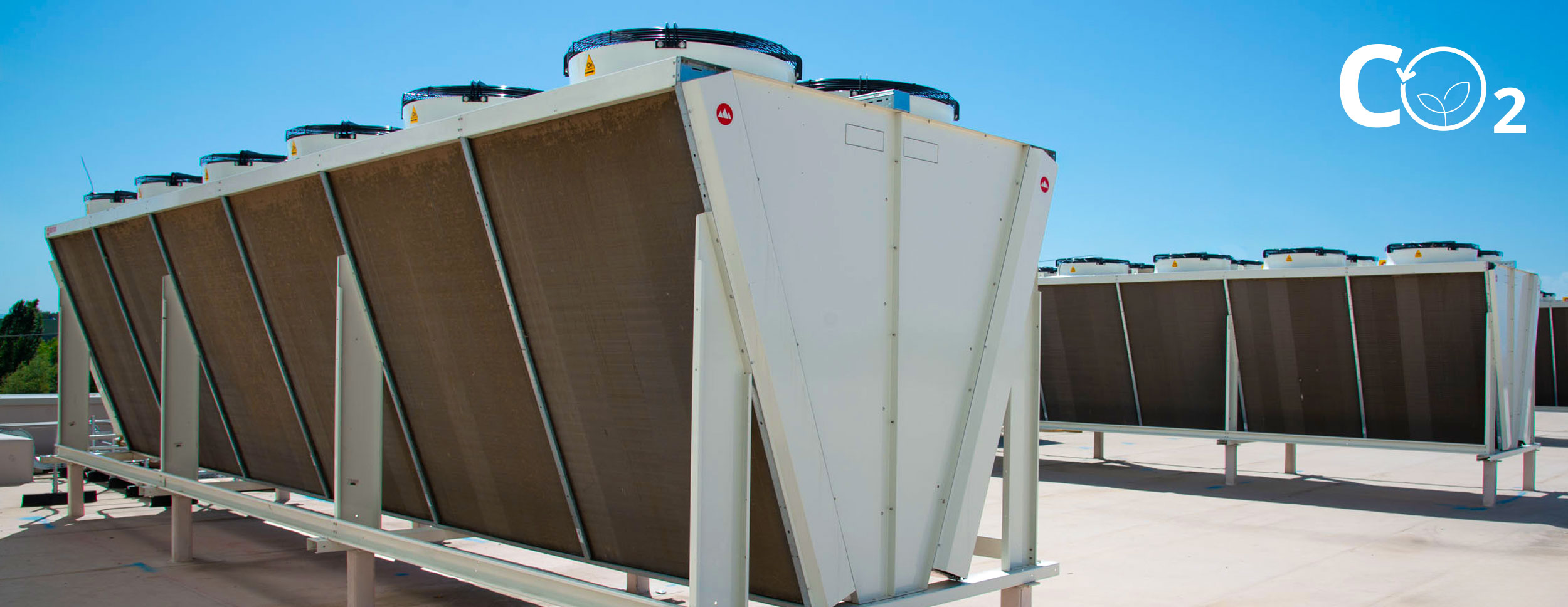 OSTRO C est le refroidisseur de gaz en V de pointe pour les installations en CO₂ qui nécessitent une grande puissance avec des encombrements réduits.